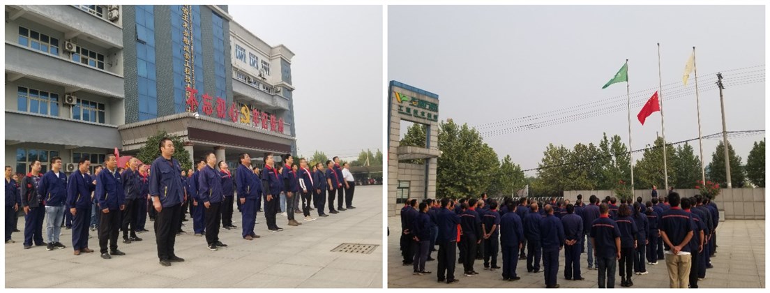 九月三十日早七點(diǎn)三十分,華豫萬通全體員工列隊(duì)公司廣場。員工們整齊著裝,氣宇軒昂,七點(diǎn)四十分旗在雄壯的歌聲中冉冉升起,全體員工高唱歌,并行注目禮。