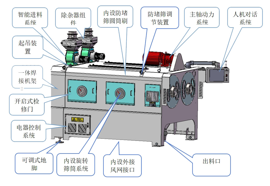 3、采用并聯(lián)雙體除糠防堵系統(tǒng),具有產(chǎn)量大、效率高、動耗低等優(yōu)點。