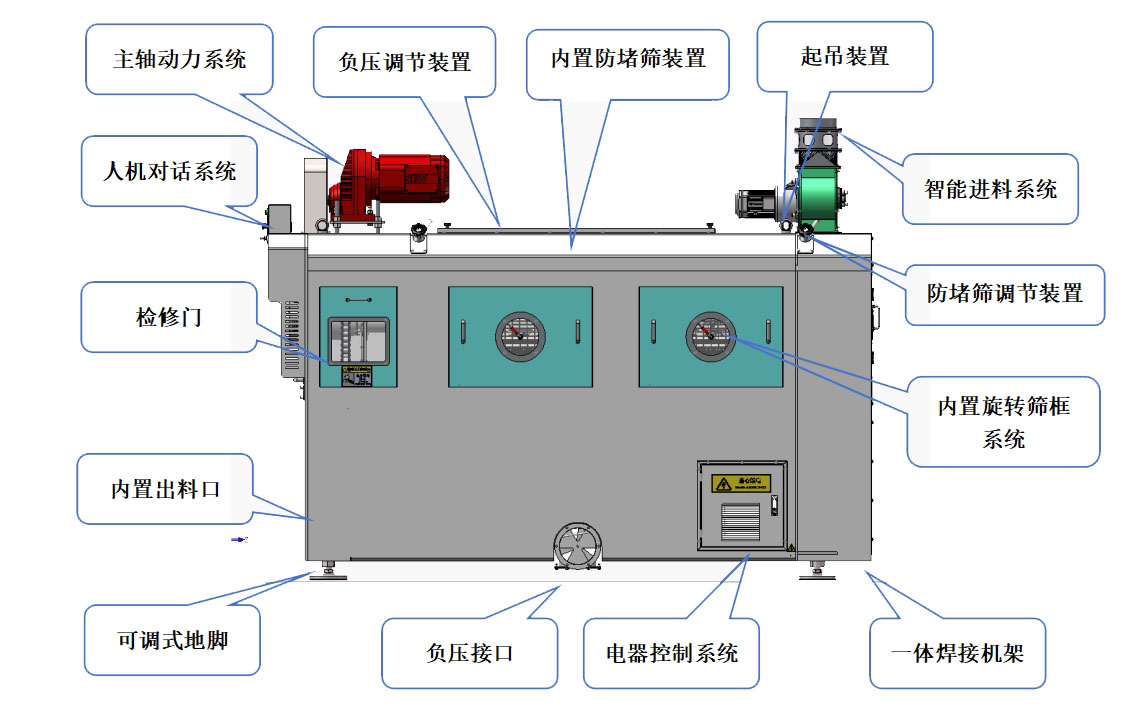3、篩孔防堵系統(tǒng):可實現(xiàn)對設(shè)備篩孔不間斷的清里,防止篩孔堵塞。